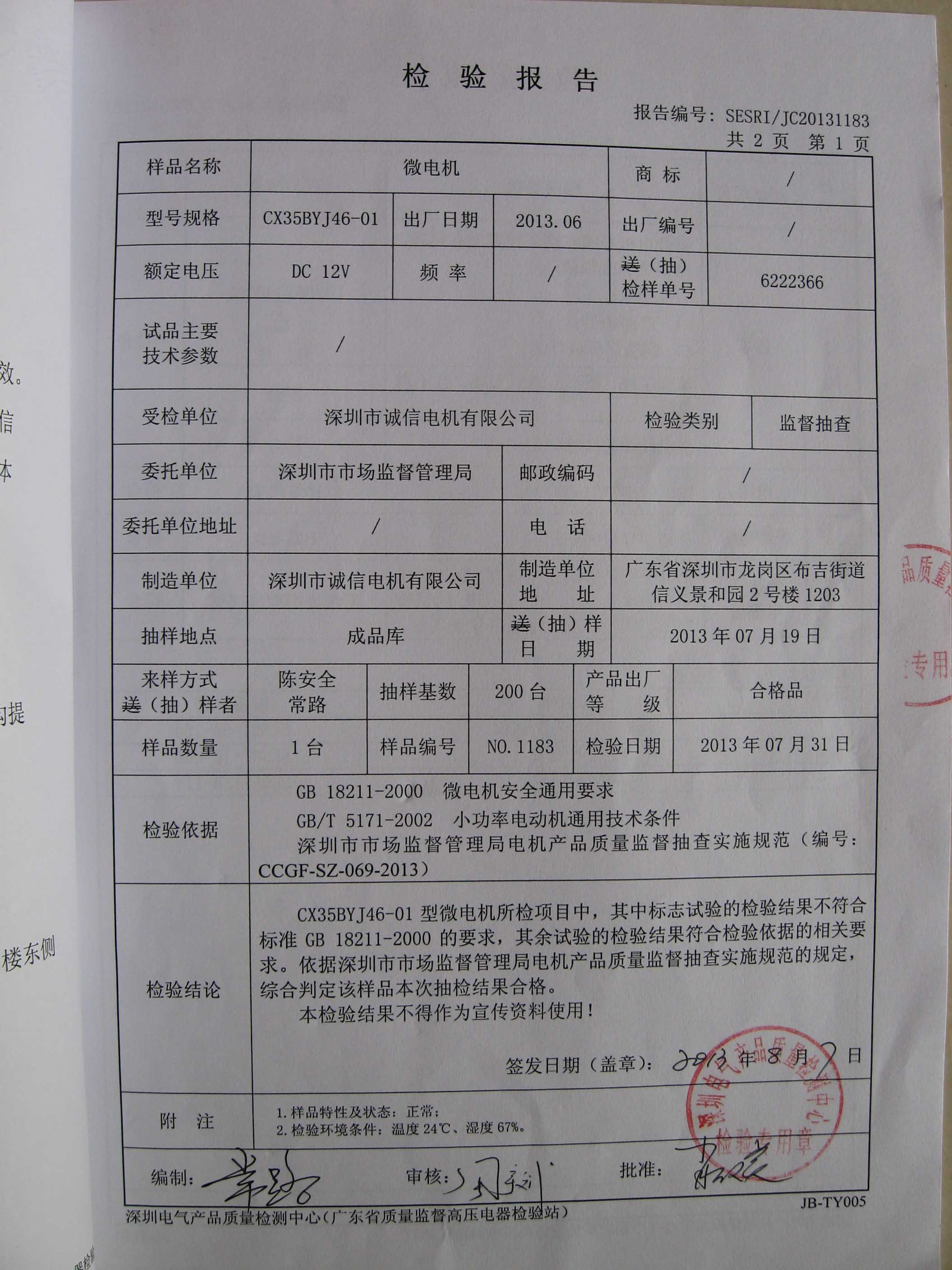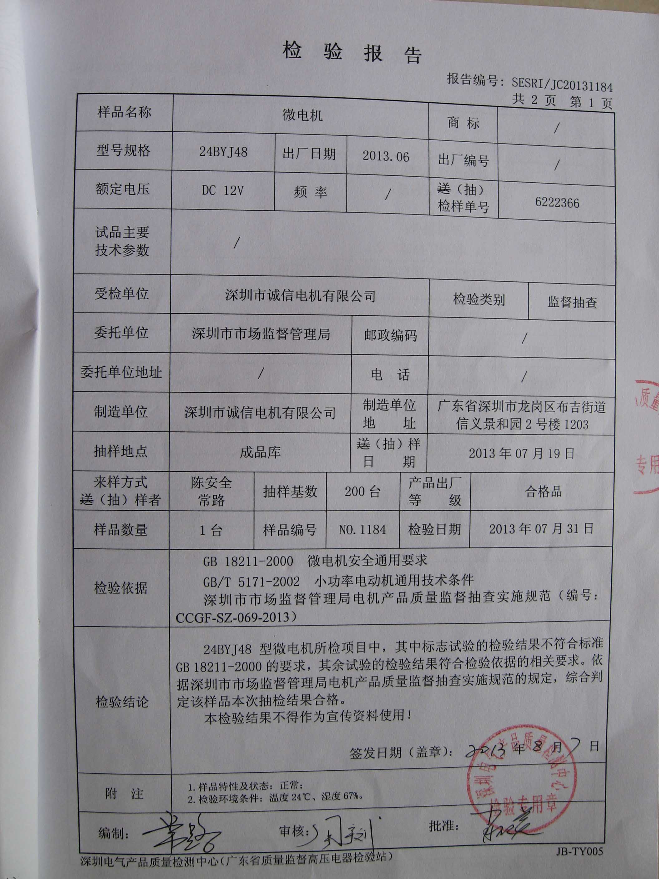 我司產品連續(xù)2年被深圳市質量技術監(jiān)督局抽檢合格